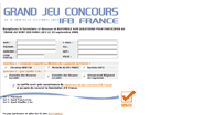 Du 16 juin au 13 septembres 2008, le Grand Jeu Concours IFB France vous propose de gagner un MacBook Air, un IPOD Touch 8 Go et un IPOD Shuffle 2 Go. Pour participer, il vous suffit simplement de répondre à 2 questions puis d'indiquer vos coordonnÃ...